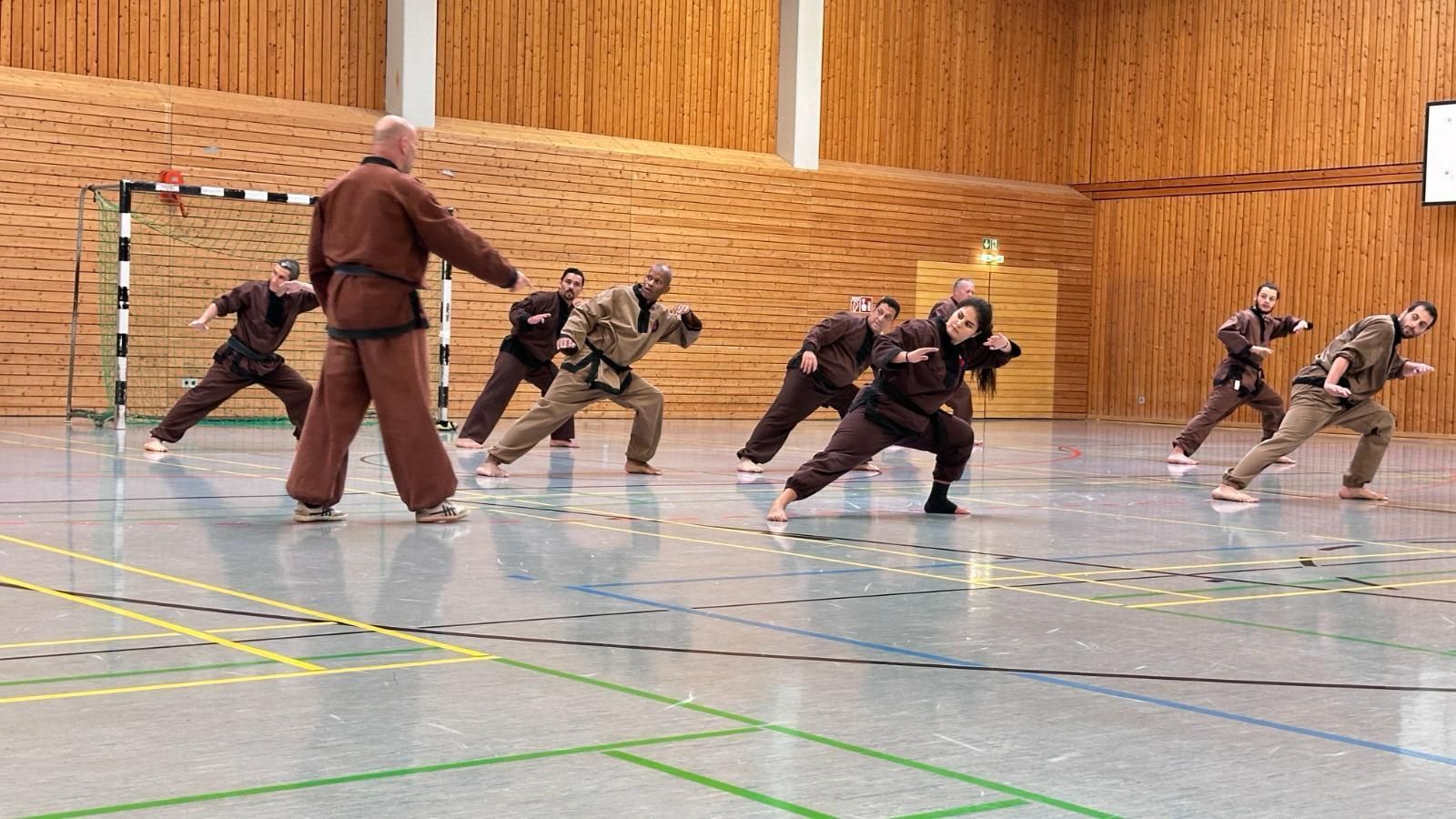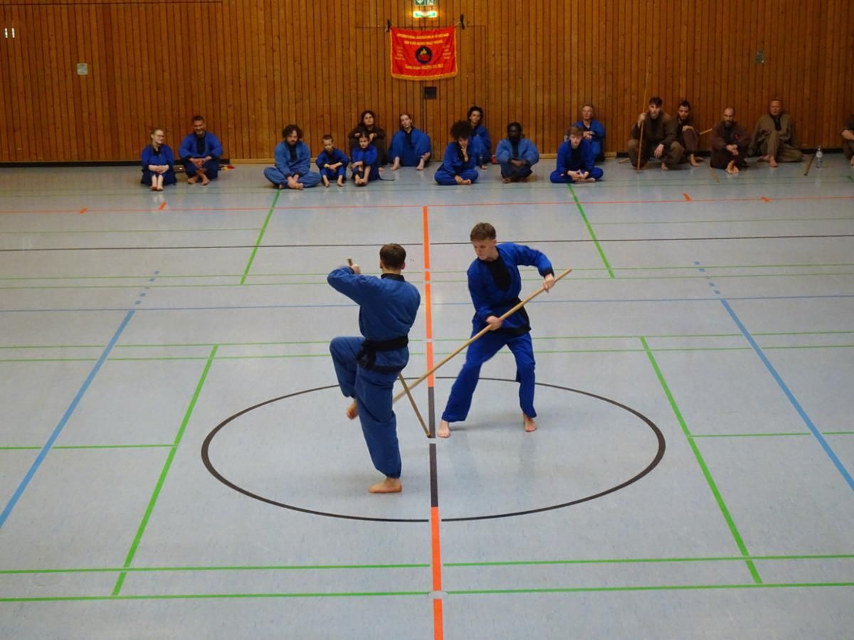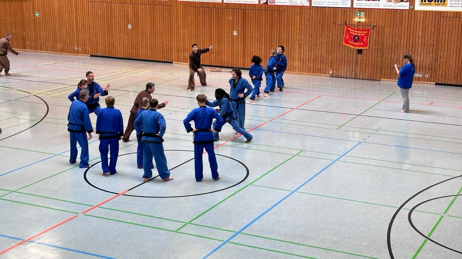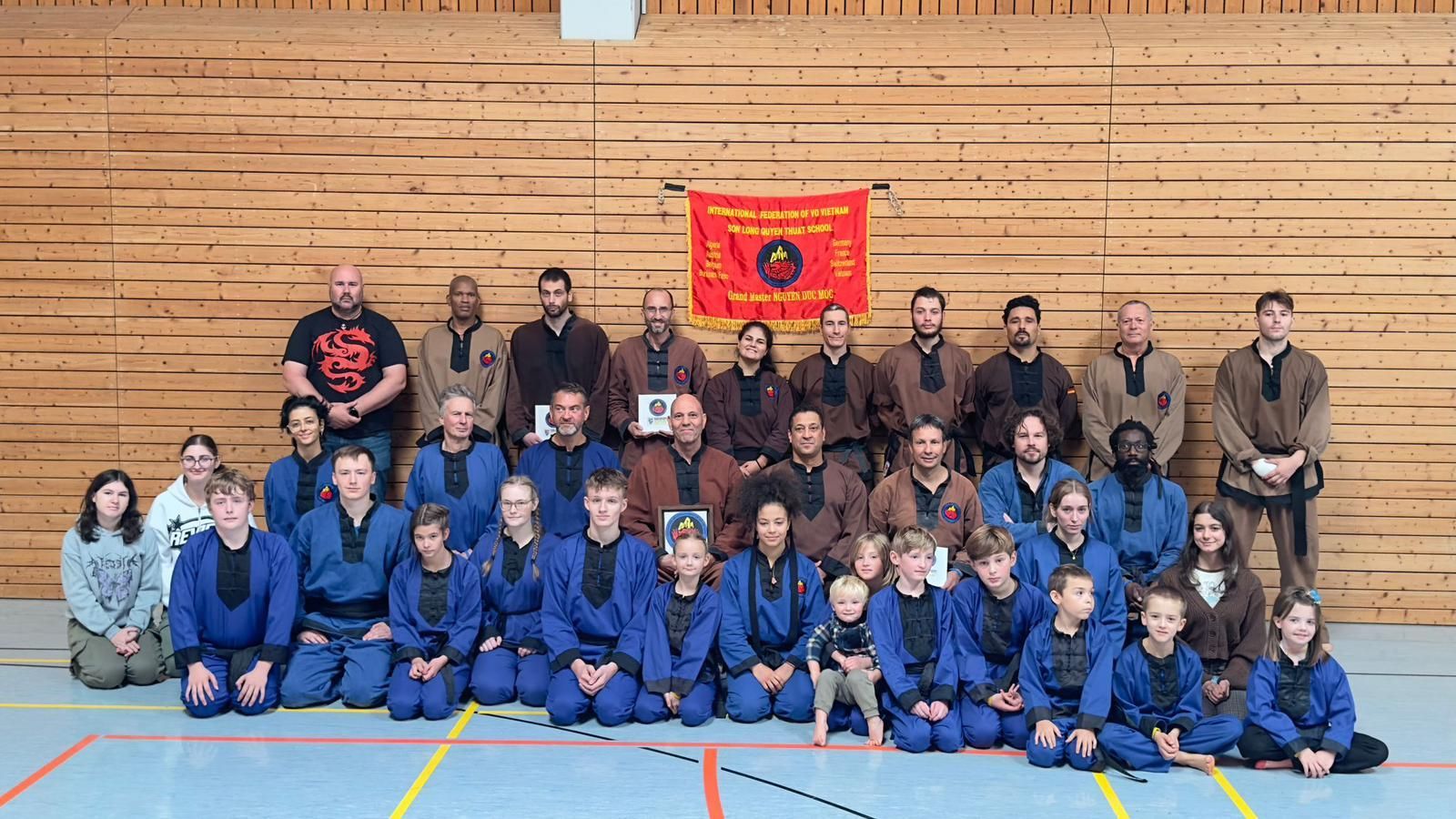 Besonders gefreut hat den Großmeister Rabah Aissat die Anreise von 15 Kampfkünstlern und Kampfkünstlerinnen aus Frankreich. Die meisten aus der Nähe von Paris. In Frankreich ist die Kampfkunst des Vo Vietnam, dessen Ursprung in Vietnam liegt, noch verbreiteter als in Deutschland.