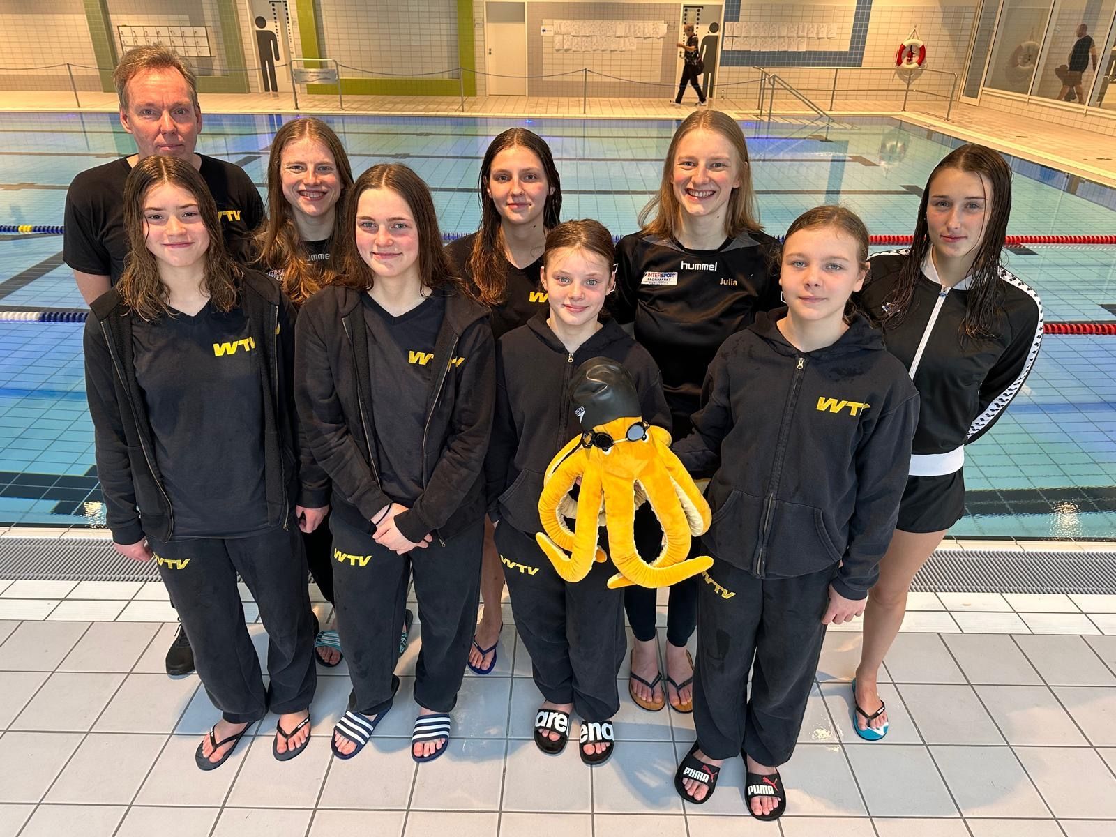 Die starken Auftritte aller Schwimmerinnen mit vielen neuen persönlichen Bestzeiten sicherten den tollen Erfolg der Mannschaft. Für den WTV waren die folgenden Teilnehmerinnen am Start: Celine Becerra, Katharina Cziudaj, Emma Hackländer, Ida Rodewig, Marie Rodewig, Milla Rodewig, Anne Seifert und Julia Seifert. Für das nächste Jahr hoffen die Aktiven sich auch in der Bezirksliga behaupten zu können.